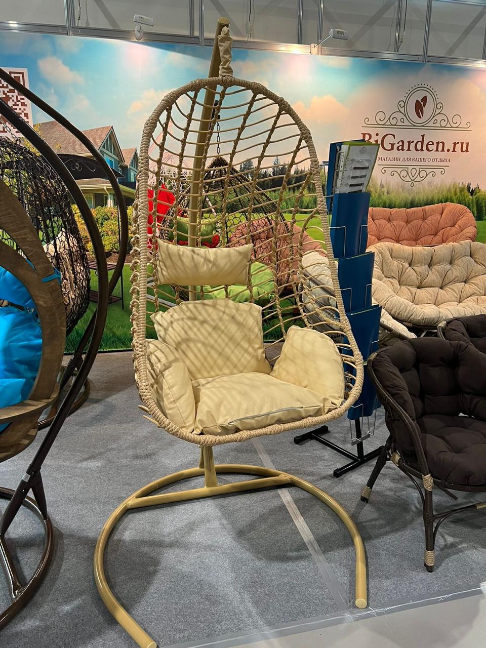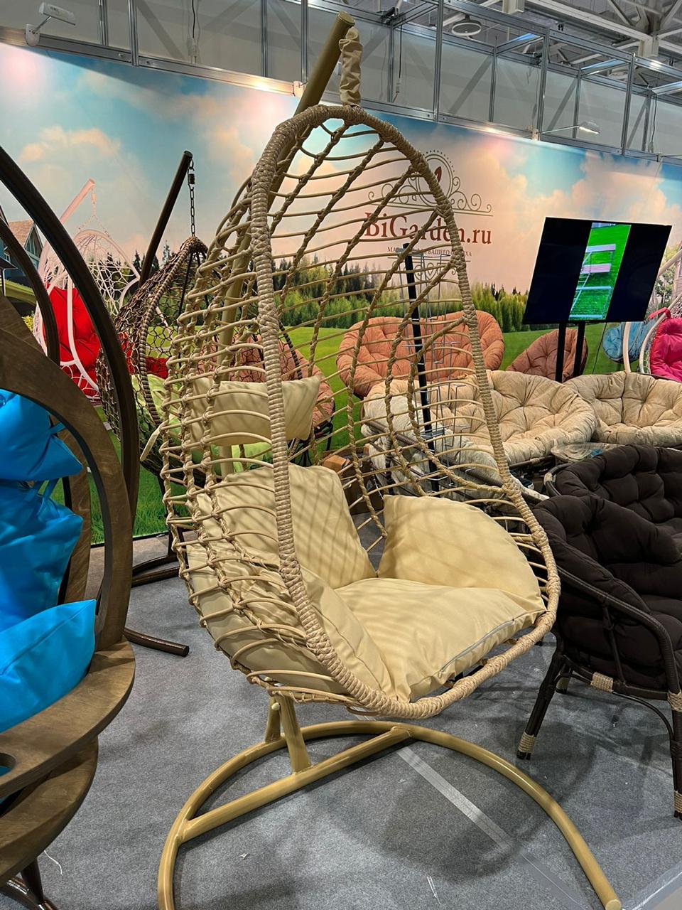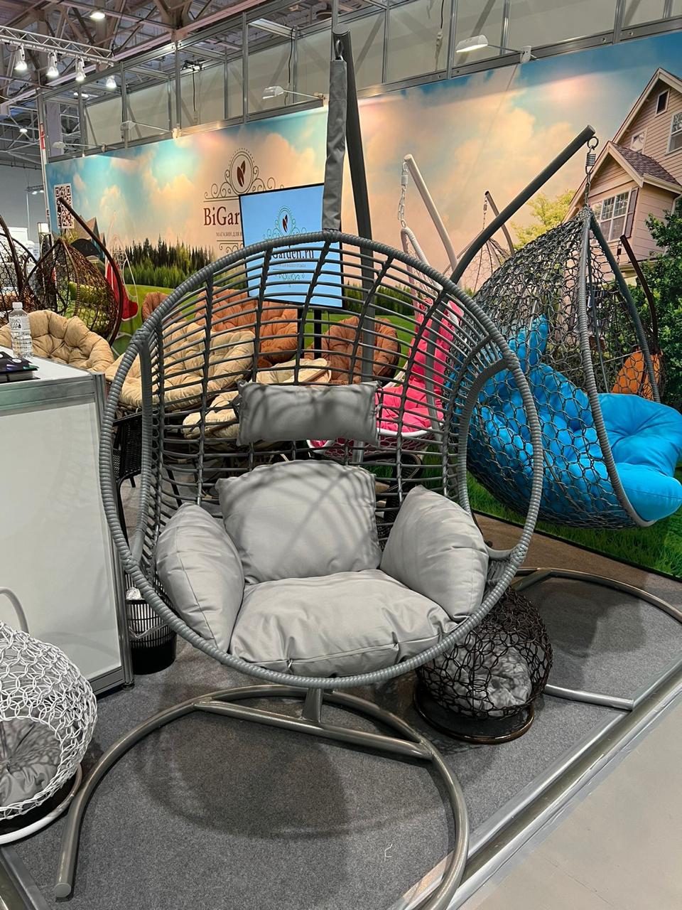 • Подвесные кресла из искусственного ротанга. Каркасы из стали, плетение ручное. Устойчивы к осадкам и солнцу. Каждая деталь продумана.
